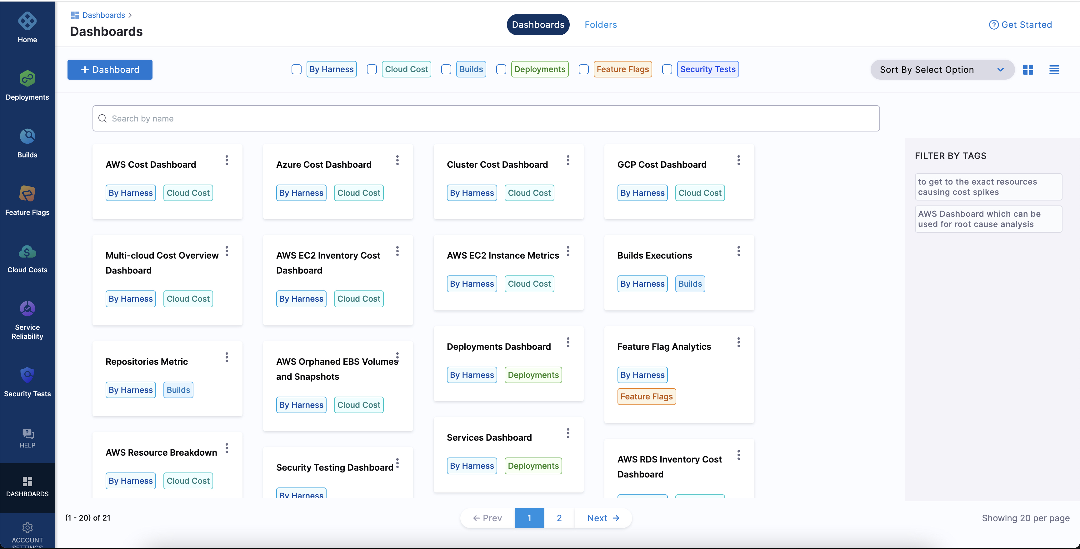 1. In the Harness application, click Dashboards.