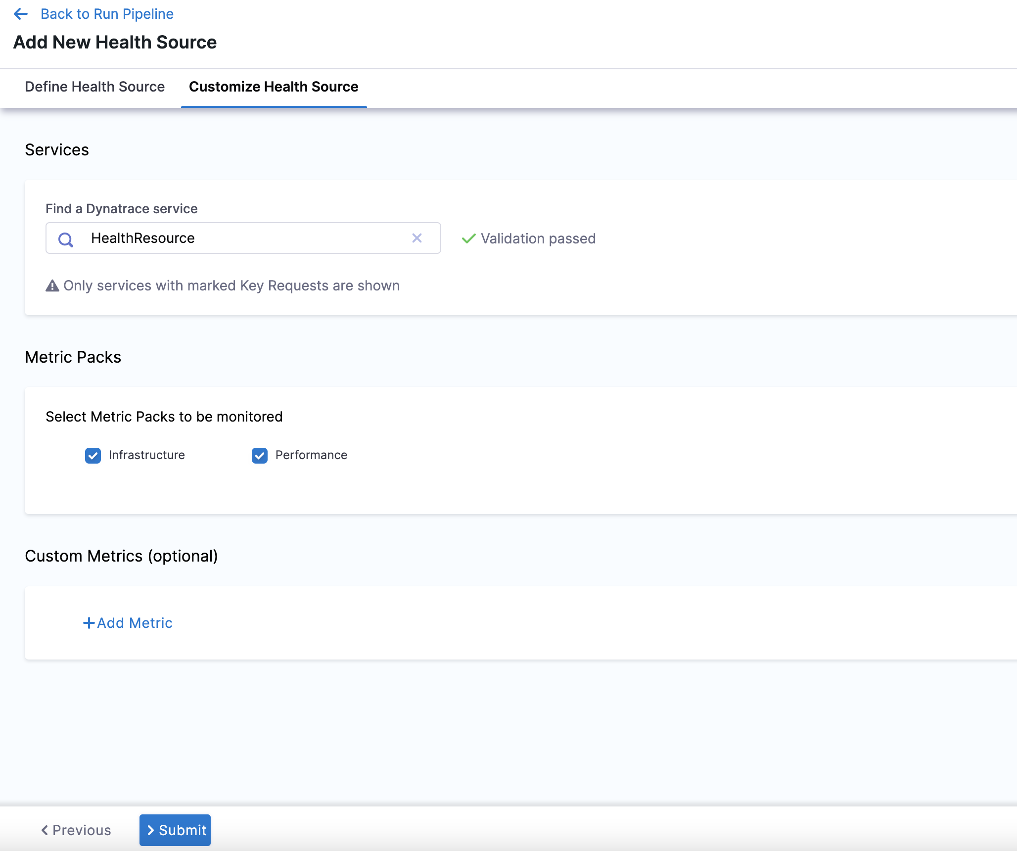 2. In Select Metric Packs to be monitored, you can select Infrastructure, Performance, or both.