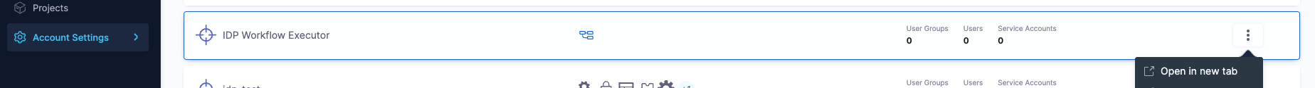 1. Go to your administrative settings and select the scope (Account, Org, or Project) where you want to configure RBAC for Workflows.