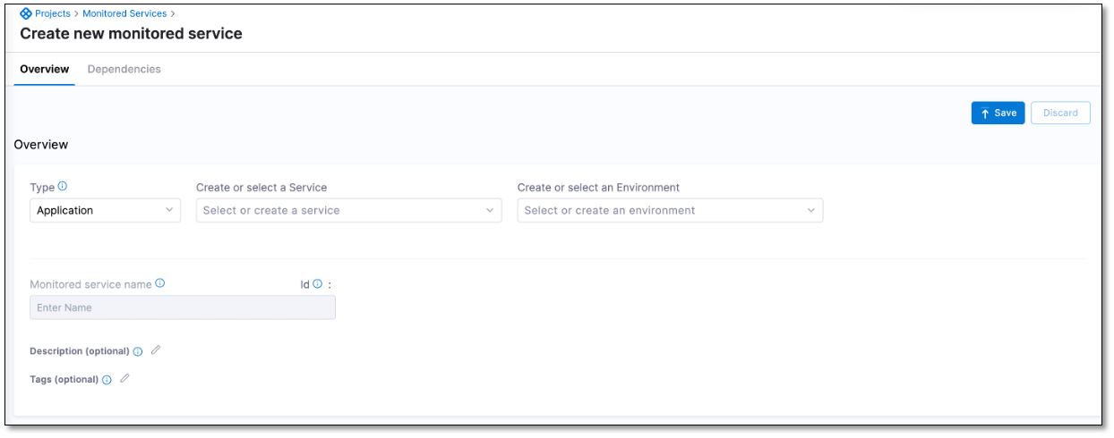 Enter a name for the monitored service, an optional description, and a tag.