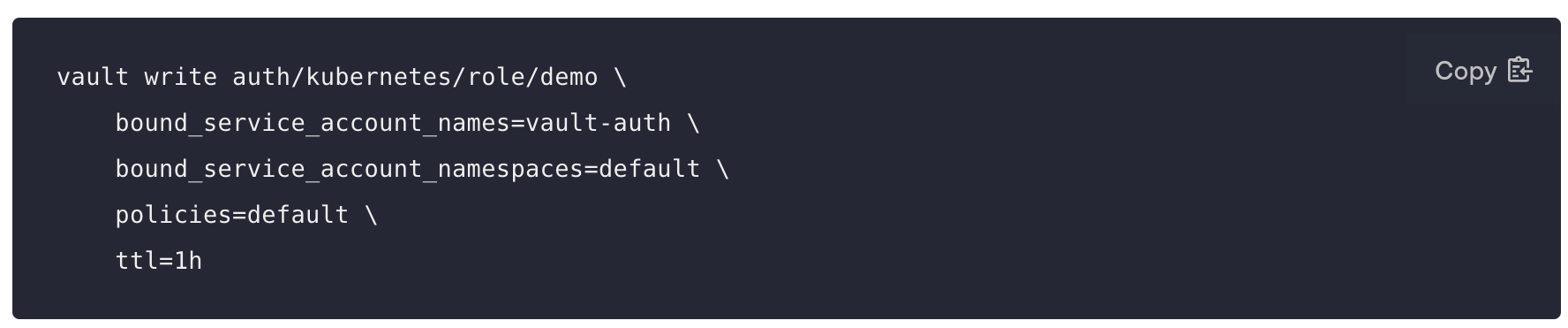 Use the following command to create the role in Vault: