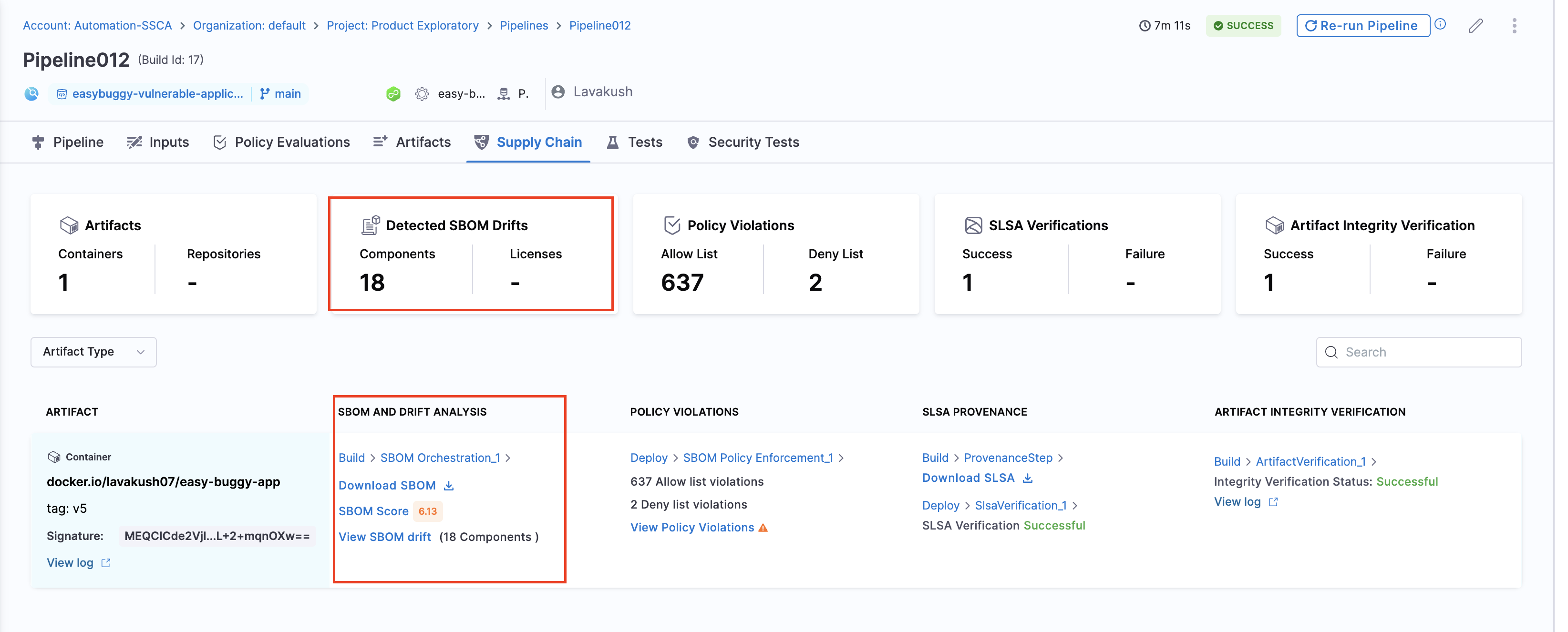 When the pipeline runs, the SBOM Orchestration step performs the following actions: